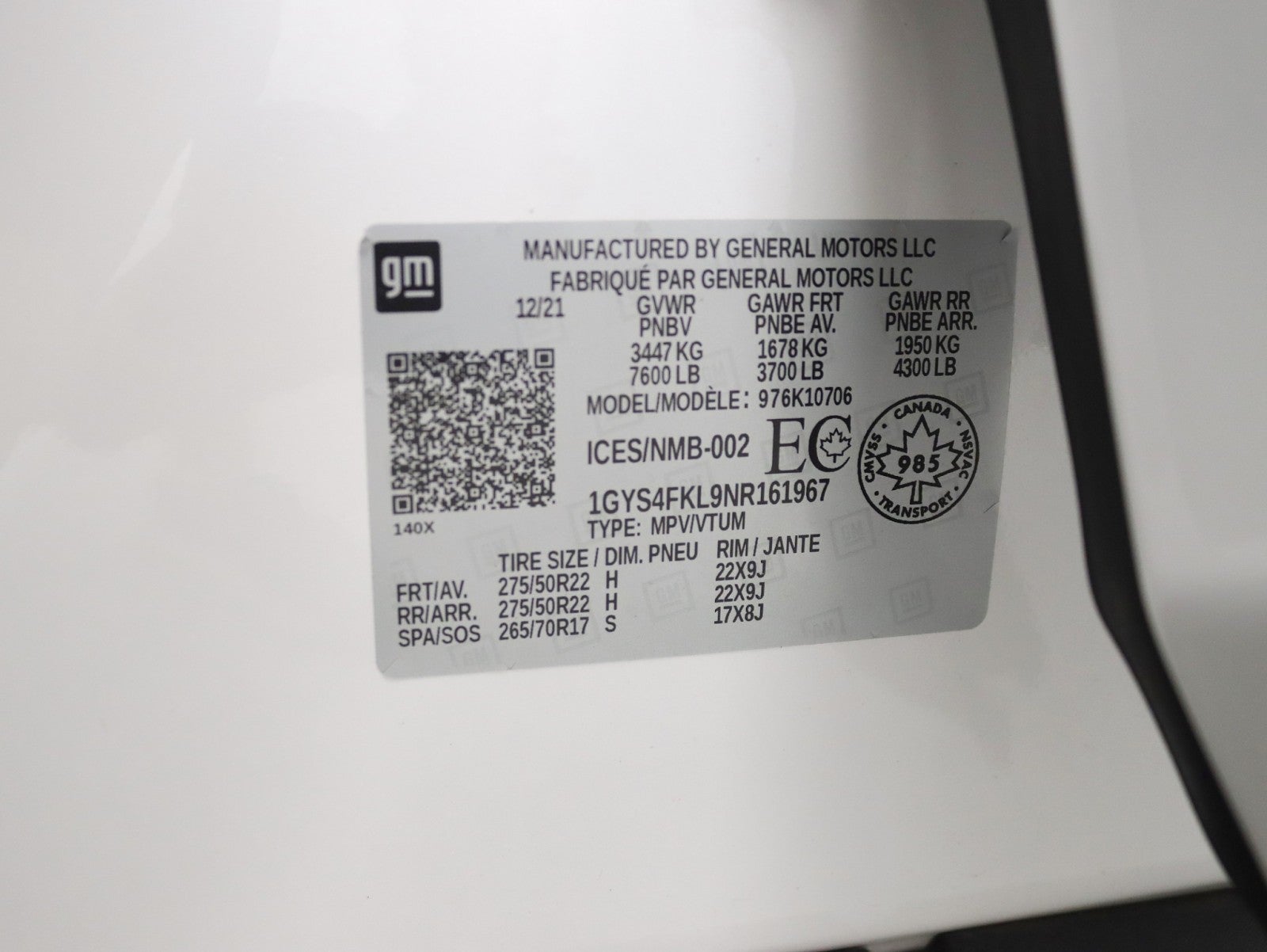 - Spare Tire Order Code: XCQ